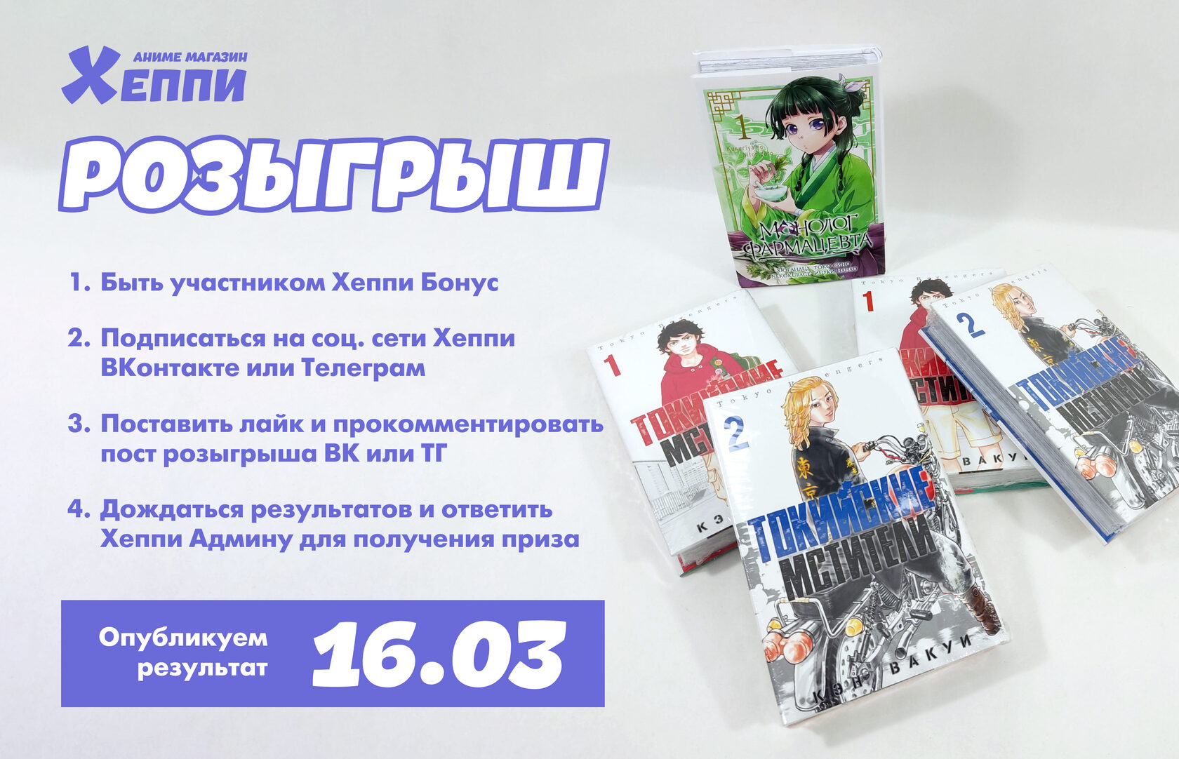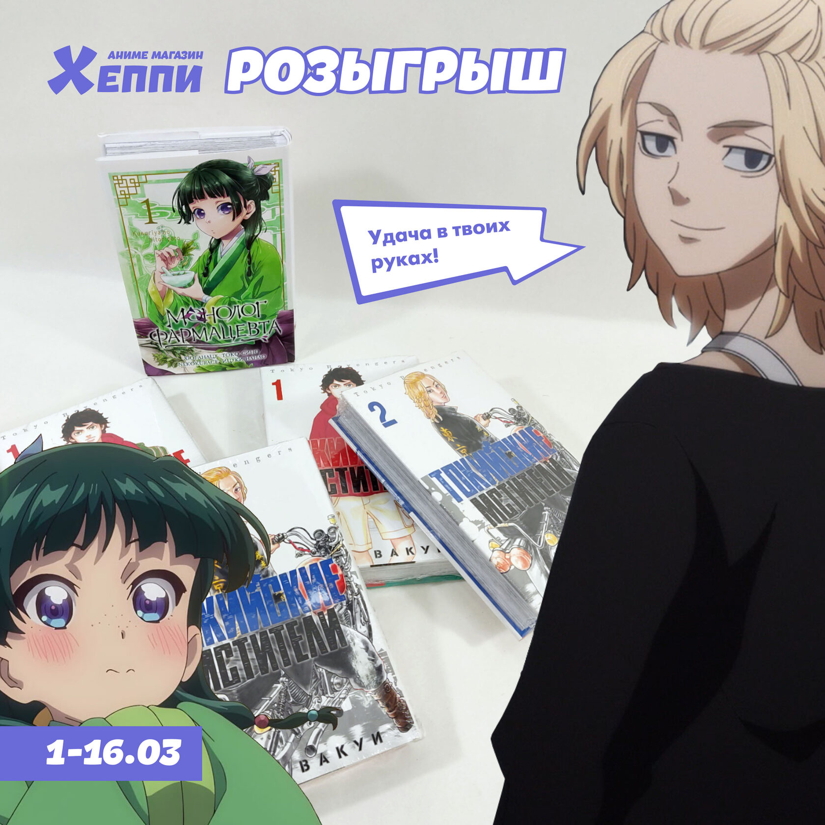 а еще сфотографируем и выложим в соц. сети Аниме магазина Хеппи, если счастливчик не против стать еще и звездой! ^_^