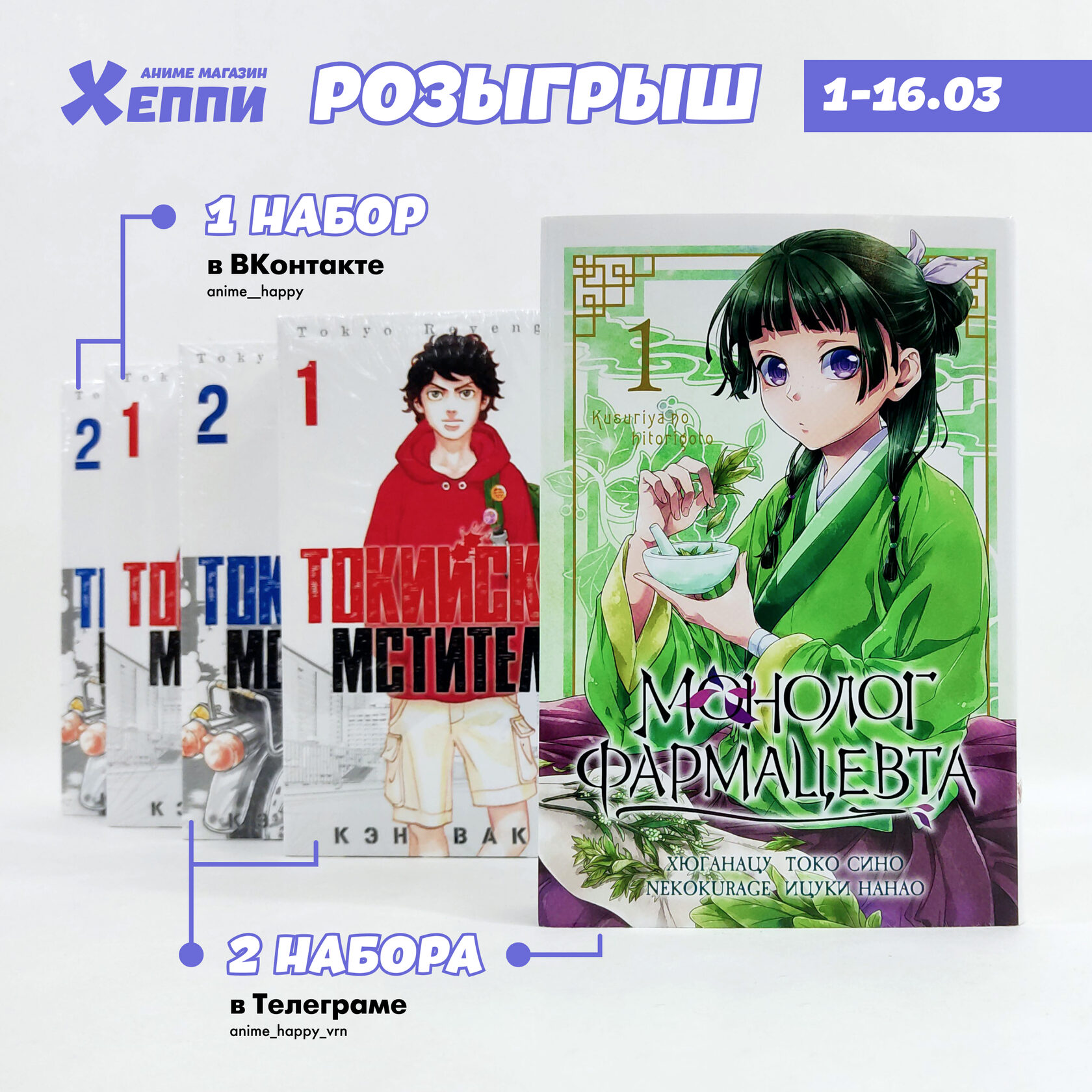 Разыгрывать мангу будем ВКонтакте и Телеграм раздельно. Подписывайтесь там, где хотите участвовать и отслеживать.
